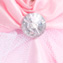Бальное платье принцессы из плотного шёлкового крепа нежно-розового цвета с фалдами из белой прозрачной сеточки. Платье украшает хрустальная пуговка. На ушке серебристая корона из блестящей ткани.